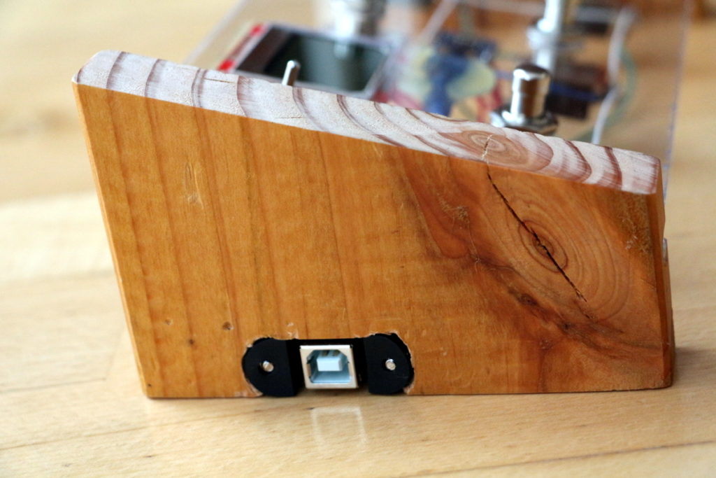 Es ist wie immer: Hat man einen Prototypen wähnt man sich fast am Ziel, aber in Wirklichkeit wird es jetzt erst richtig zäh. Bis hierher motiviert einen der Spieltrieb Forscherdrang, jetzt folgt die Arbeit. Wie soll das Teil aussehen, aus welchem Material soll es gebaut werden, wie groß soll es sein etc. Dann Zeug besorgen, ab an die Säge und an die Lötstation. Und ich muss zugeben, so richtig gefällt mir mein Produkt auch nicht. Aber es funktioniert und ist fertig umgesetzt, immerhin. Hier mal ein paar Bilder: