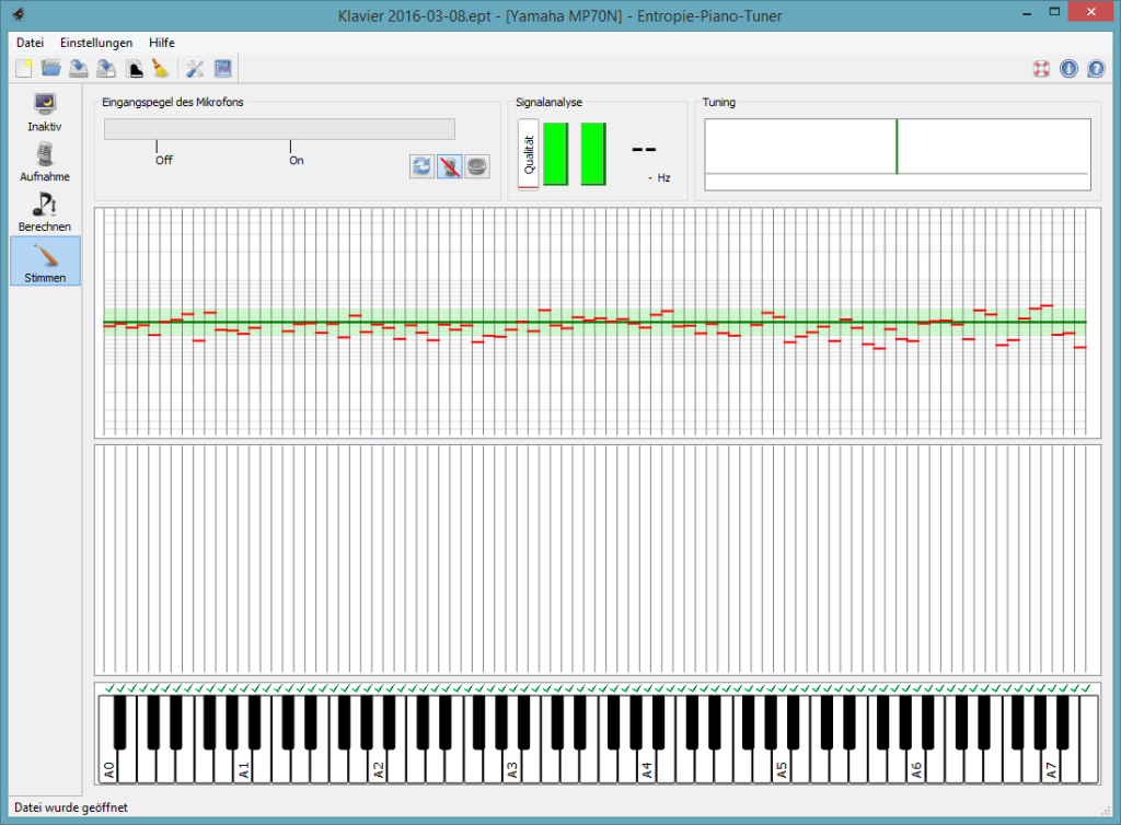 Man sieht zwar noch Abweichungen, aber die sind wirklich minimal und kaum stimmbar. Mit dem Ergebnis bin ich ziemlich zufrieden. Wobei ich auch sagen muss, dass mein Klavier noch gut in Stimmung war und nur einzelne Saiten korrigiert werden mussten. Das spricht durchaus für den Algorithmus der Entropie-Minimierung.